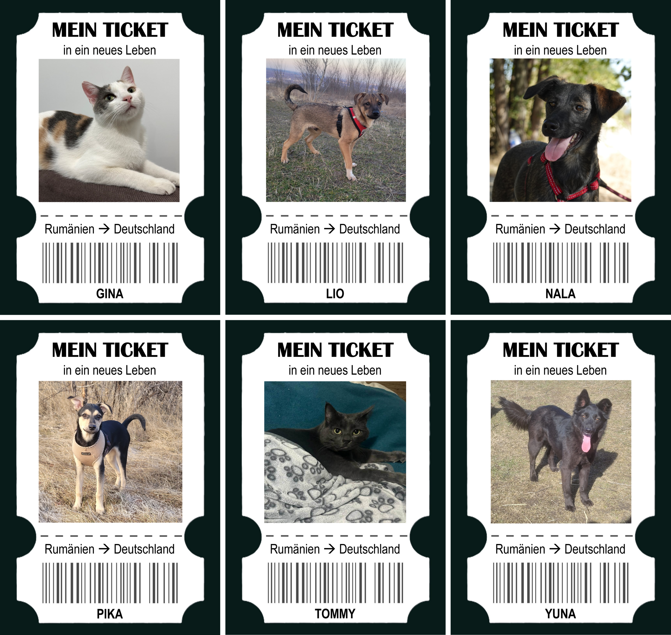 In der kommenden Woche dürfen 6 unserer Schützlinge – 4 Hunde und 2 Katzen – ihre Reise ins Glück antreten. Sie lassen ihr altes Leben hinter sich und starten in eine Zukunft voller Sicherheit, Liebe und Geborgenheit.